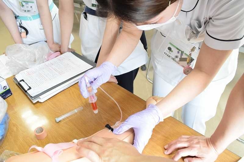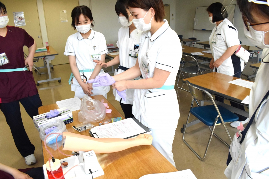 まずは駆血帯の巻き方から練習!